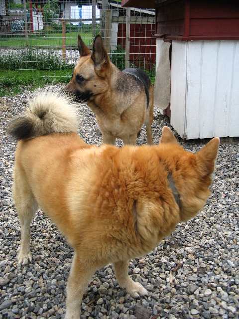 pystykorvamme sai kirmailla juoksunarussa takaoven ja taka-aidan välillä. Hankittuamme toiseksi koiraksi saksanpaimenkoiran